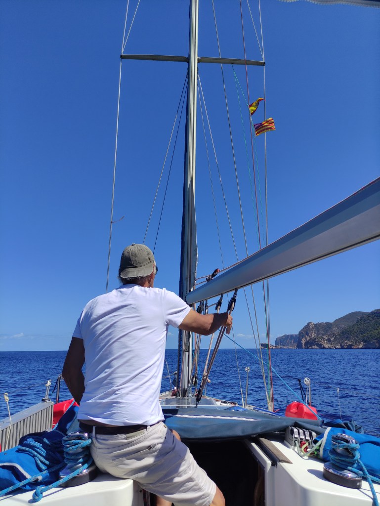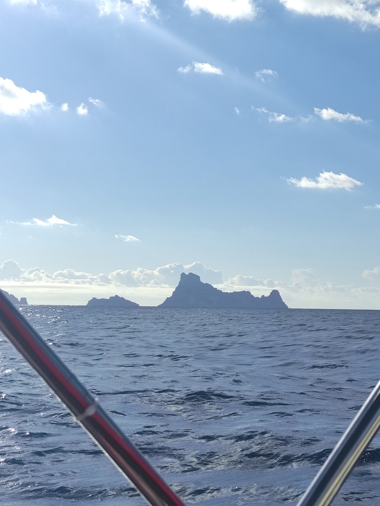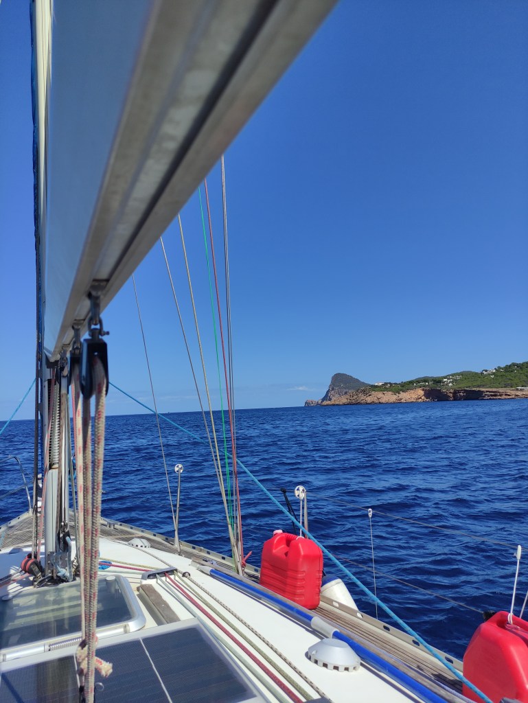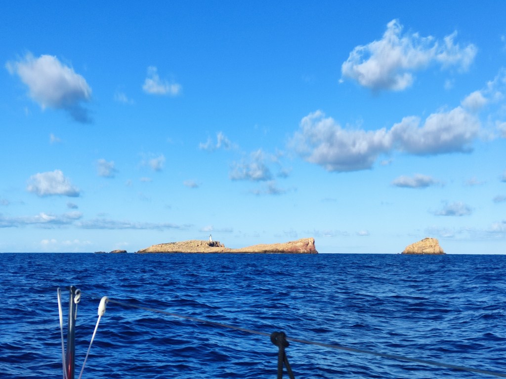 As we rounded Isla conejera, the island that protects the bay we were constantly on alert assessing the conditions – and we were pleasantly surprised that they were good 😊. We had the mainsail out and made good progress motor sailing along through the smaller islands that surround Ibiza