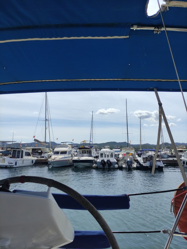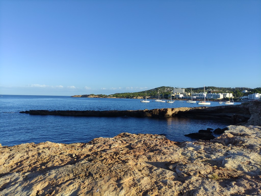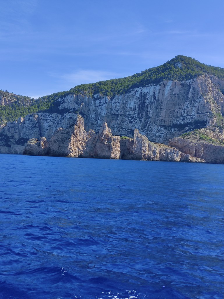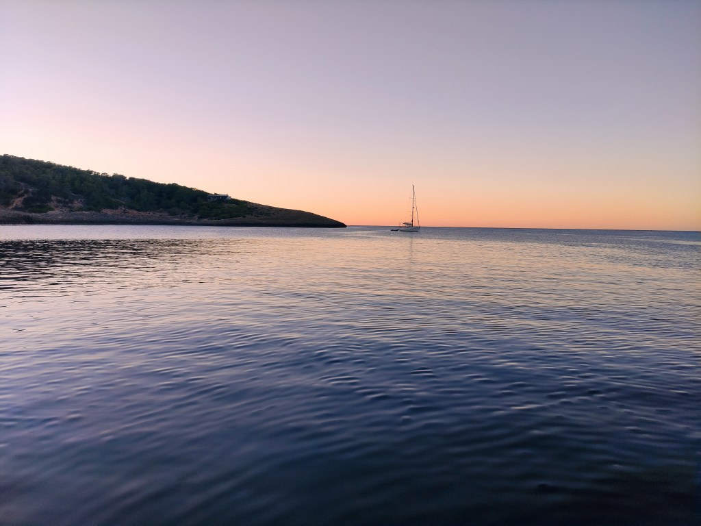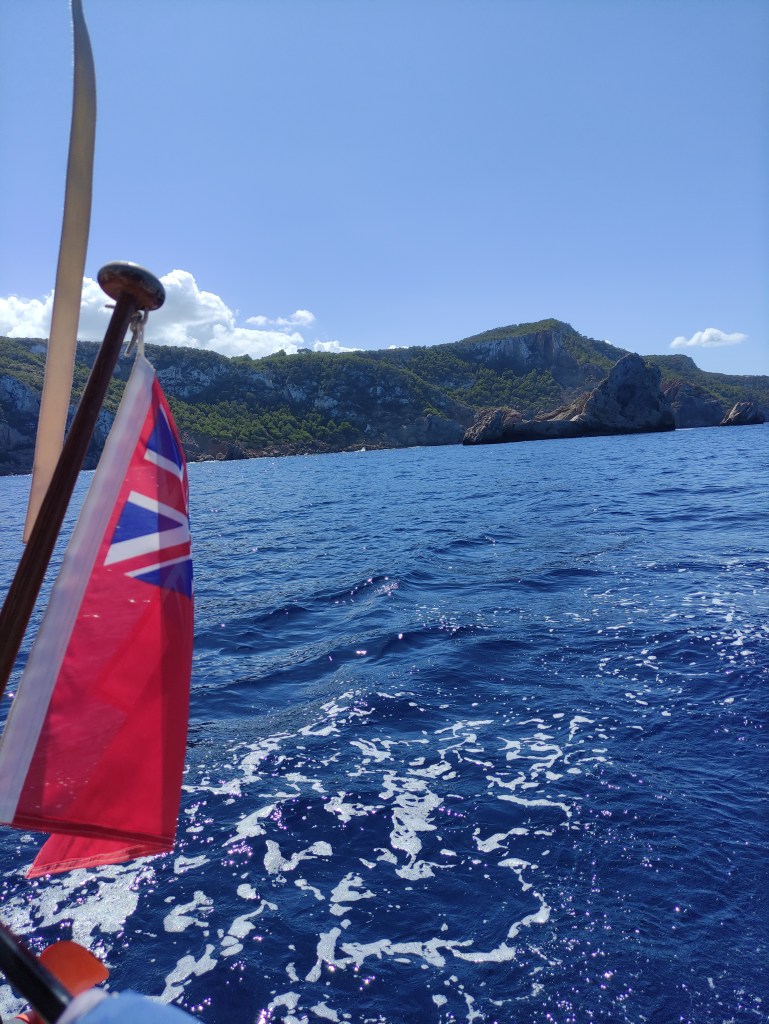 As we rounded Isla conejera, the island that protects the bay we were constantly on alert assessing the conditions – and we were pleasantly surprised that they were good 😊. We had the mainsail out and made good progress motor sailing along through the smaller islands that surround Ibiza