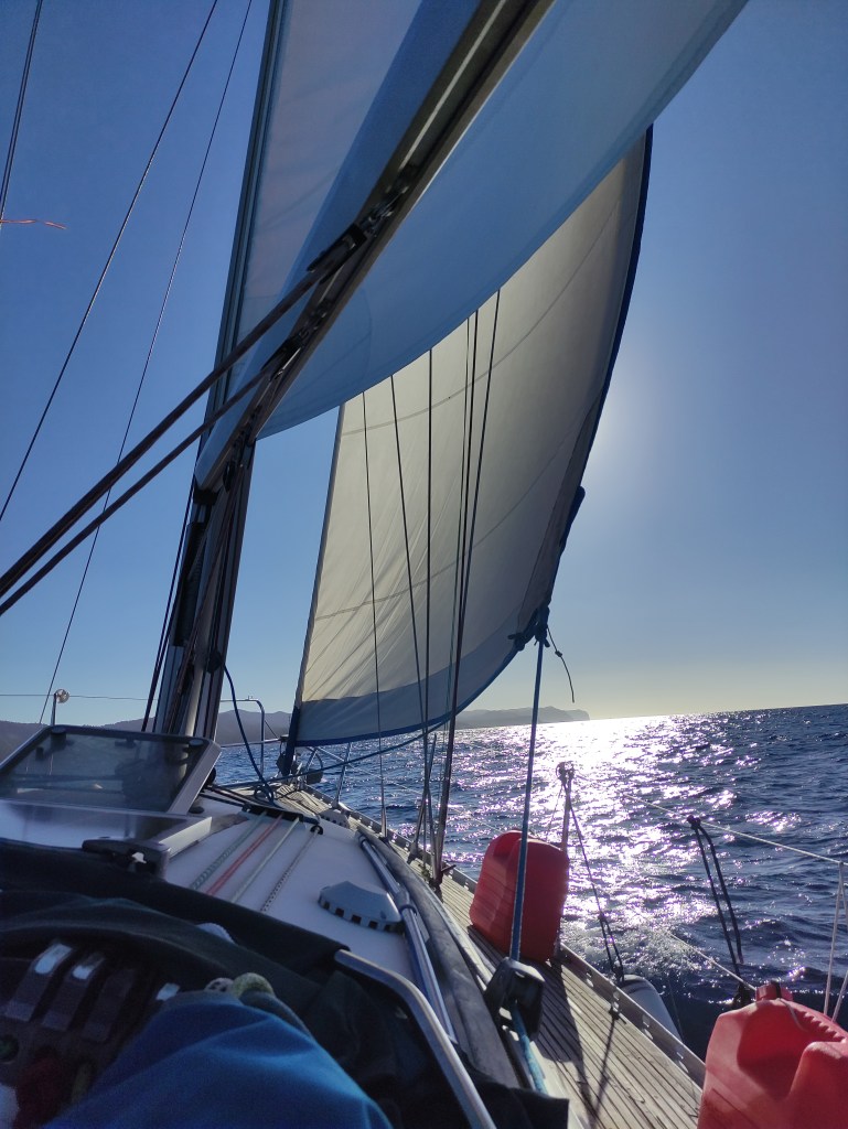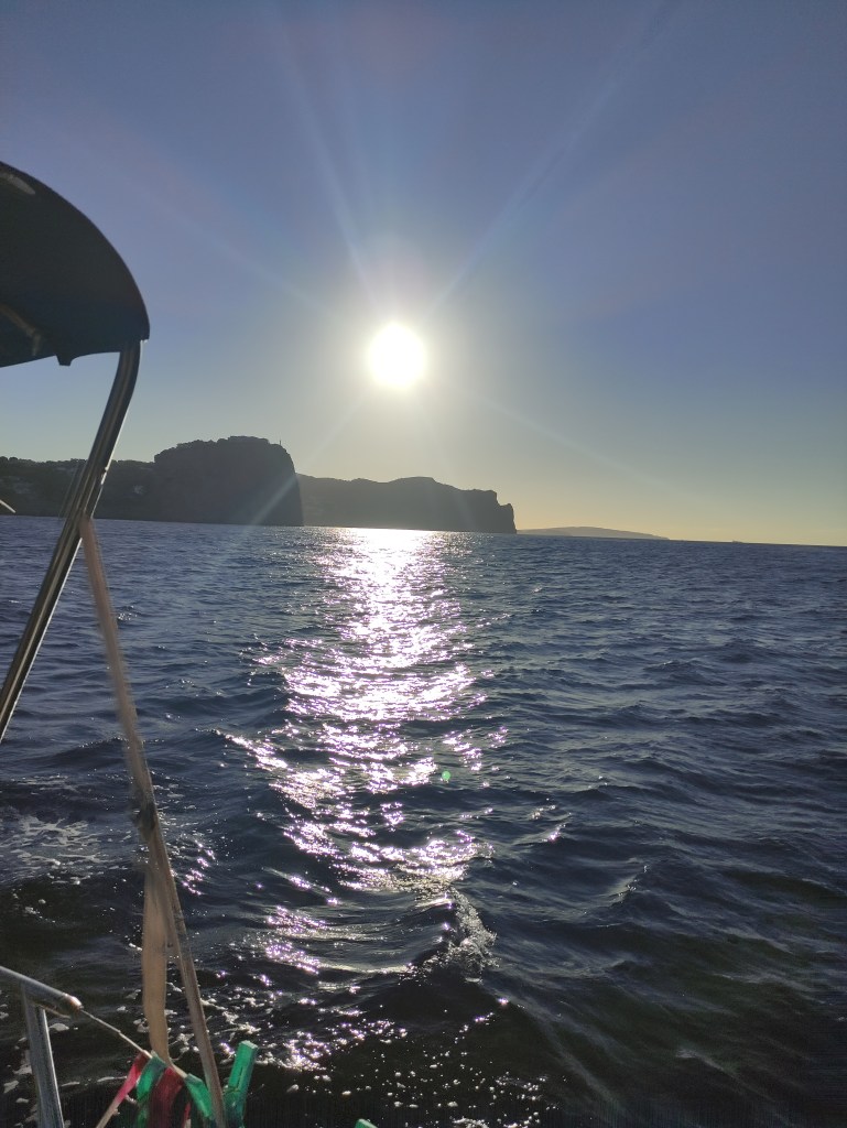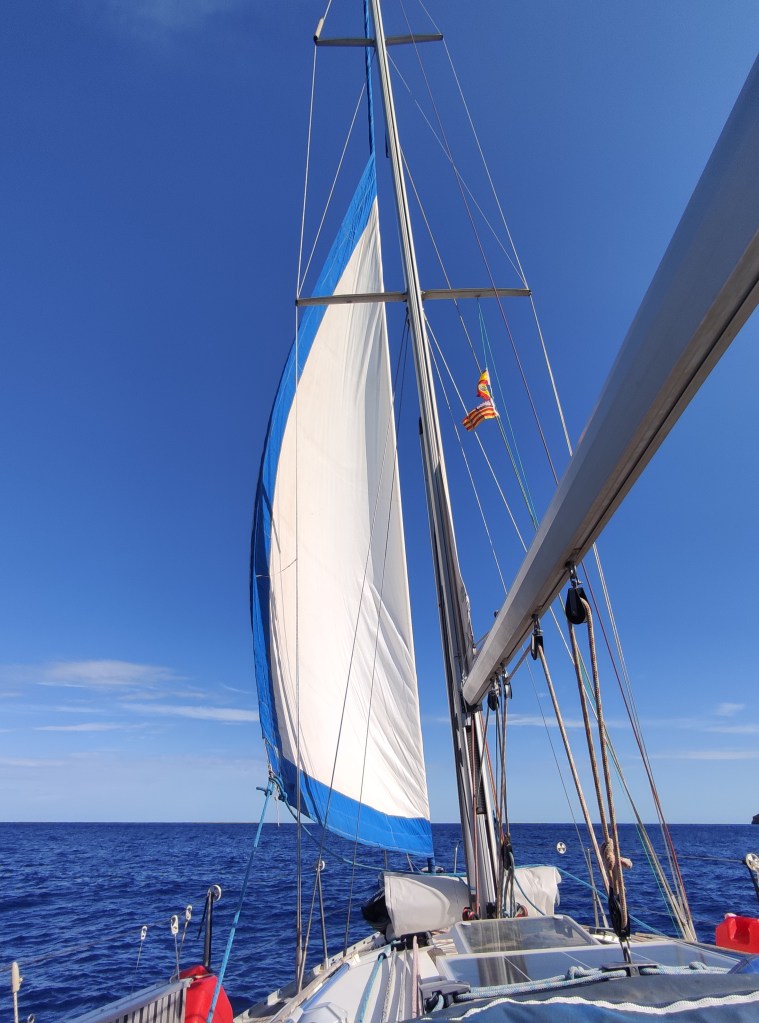 Almost before we knew it we were leaving the Balearics behind us, making excellent progress on course for Cartagena. It was not sailing conditions as the wind was not strong enough to make the speed we would need but we did motor sailing and enjoyed a fabulous day at sea.