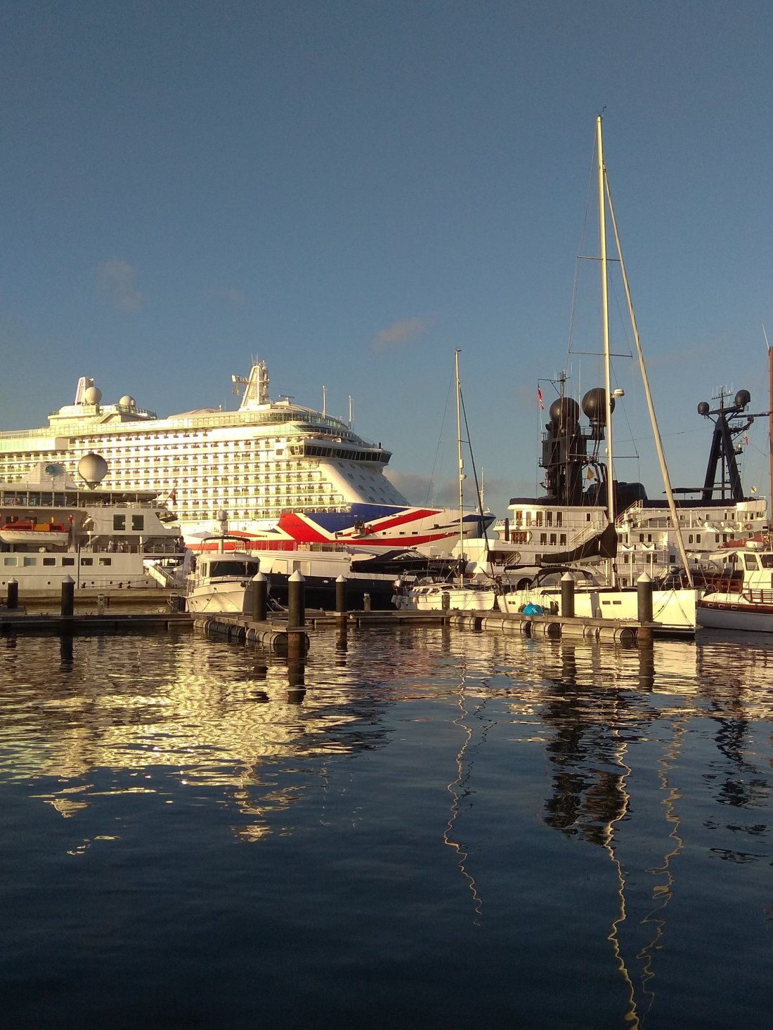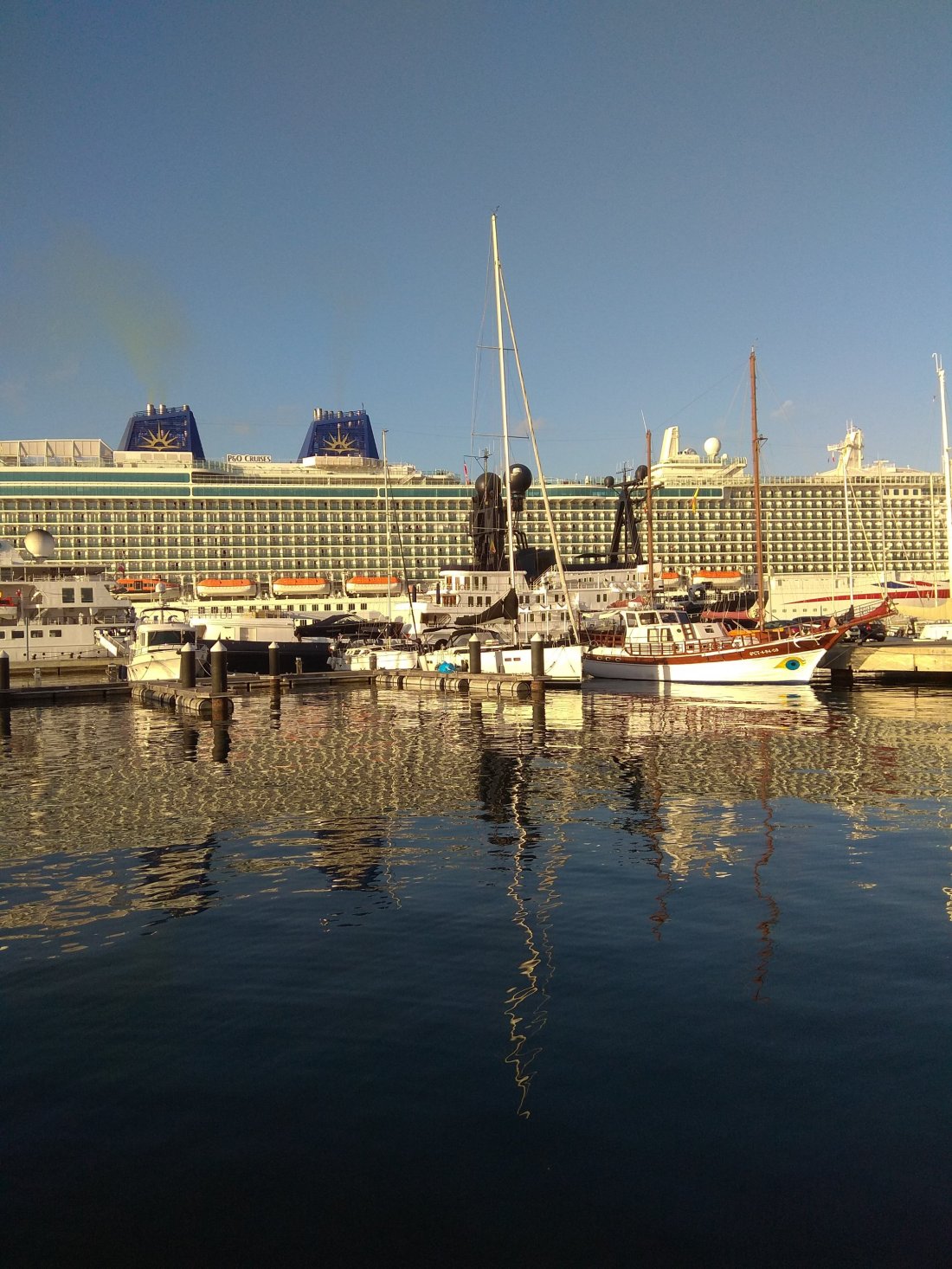Another day we enjoyed the luxury Crystal Espirit (62 passengers to 91 crew!!) being completely overshadowed by P&O Britannia, one of the more modern looking super cruise liners with over 3.000 passengers aboard. It was great fun watching them come onto berth but it’s also always a relief when they leave at the end of the day, especially since Britannia was carrying out crew “exercises” and testing their alarm systems during the morning which was not exactly peaceful!