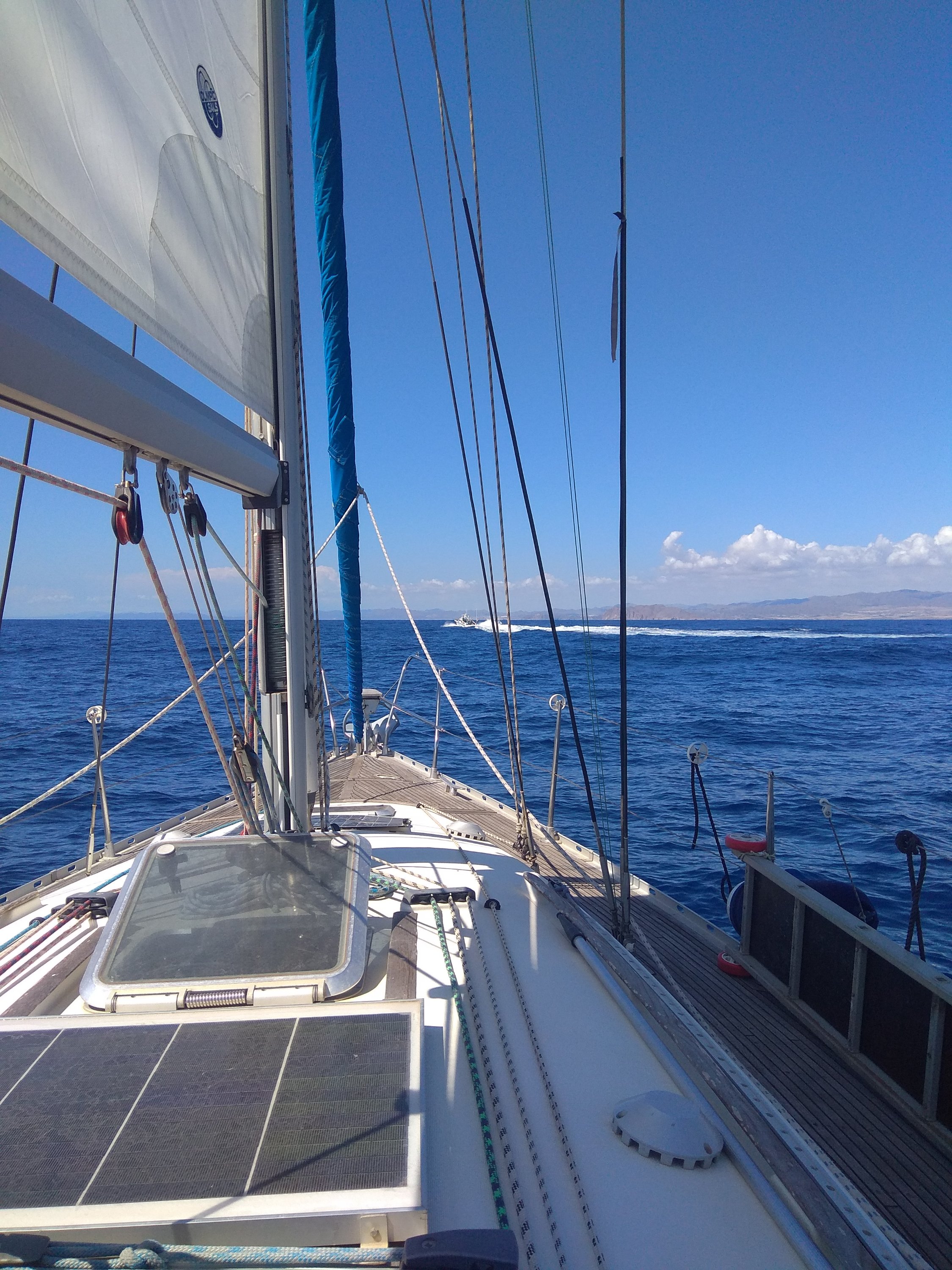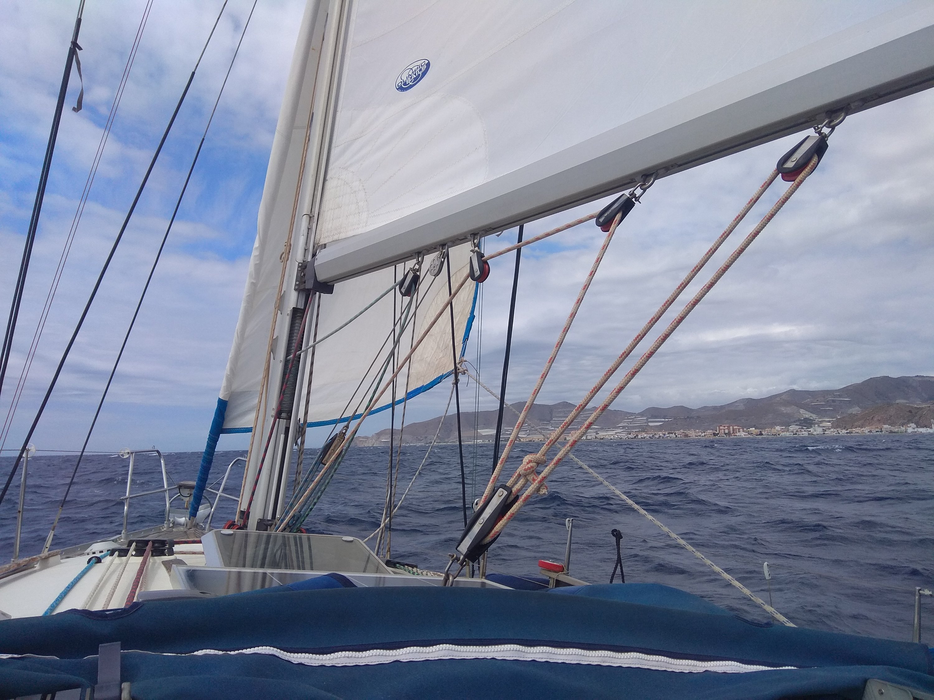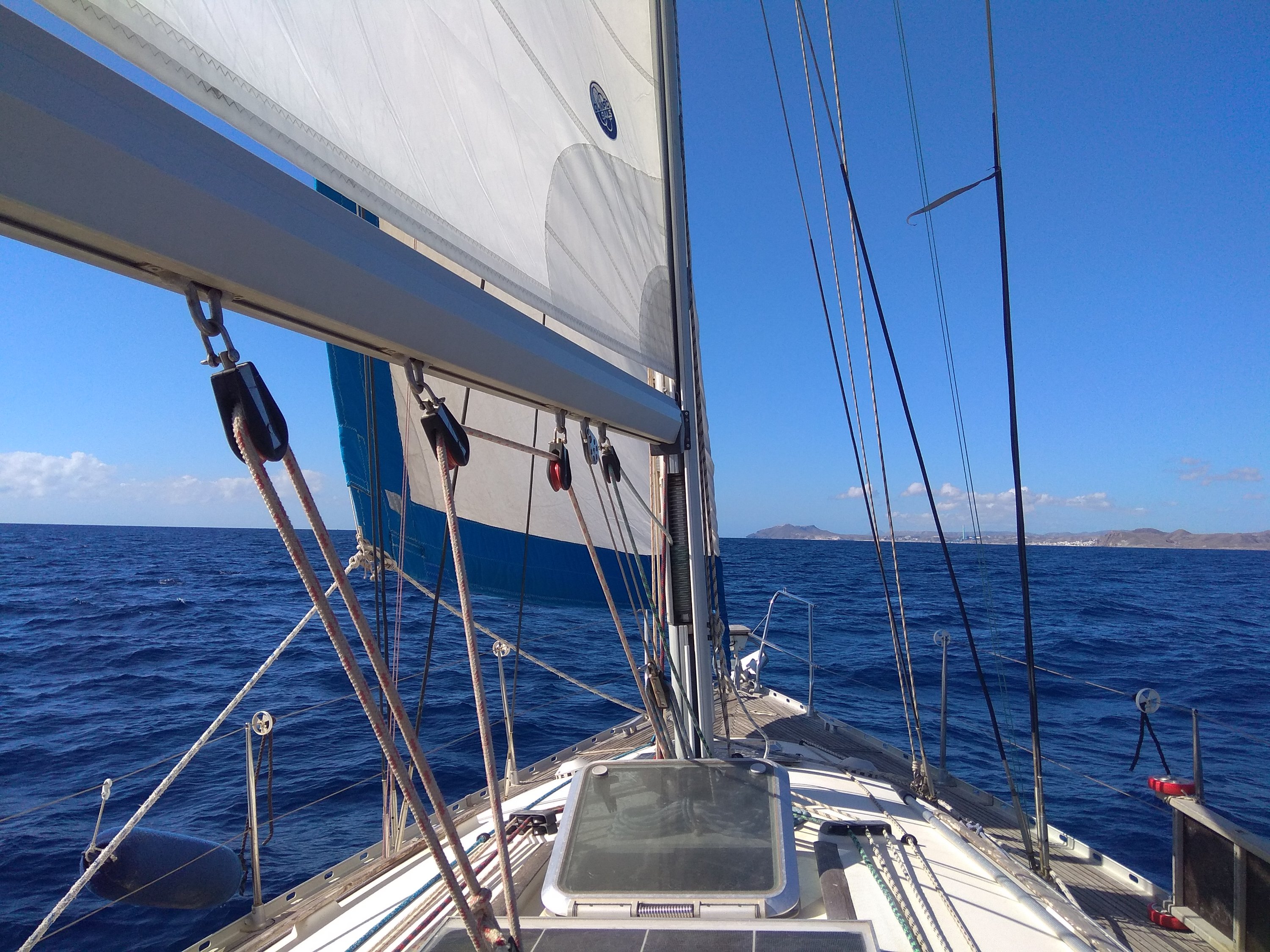 The conditions were perfect for sailing and it was not long before we turned off the engine and sailed away, following the coastline past Mojacar and Carboneras before rounding a very slight headland ( we did motor sail for a couple of hours at this point to get us to a better sailing position to use the wind). We had to do a fair few sail changes during the day to keep the wind in the sails but it kept us on our toes and it was good fun. All in all a fantastic day and another 38 nautical miles covered (because of the extra needed to make the most of the wind, it should have been around 30 if we could have travelled direct)