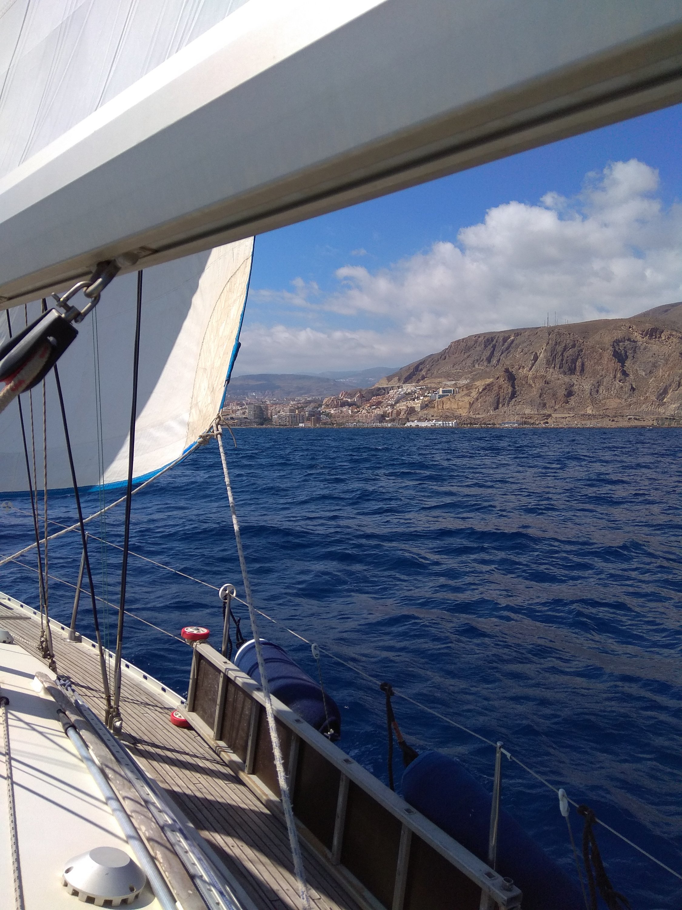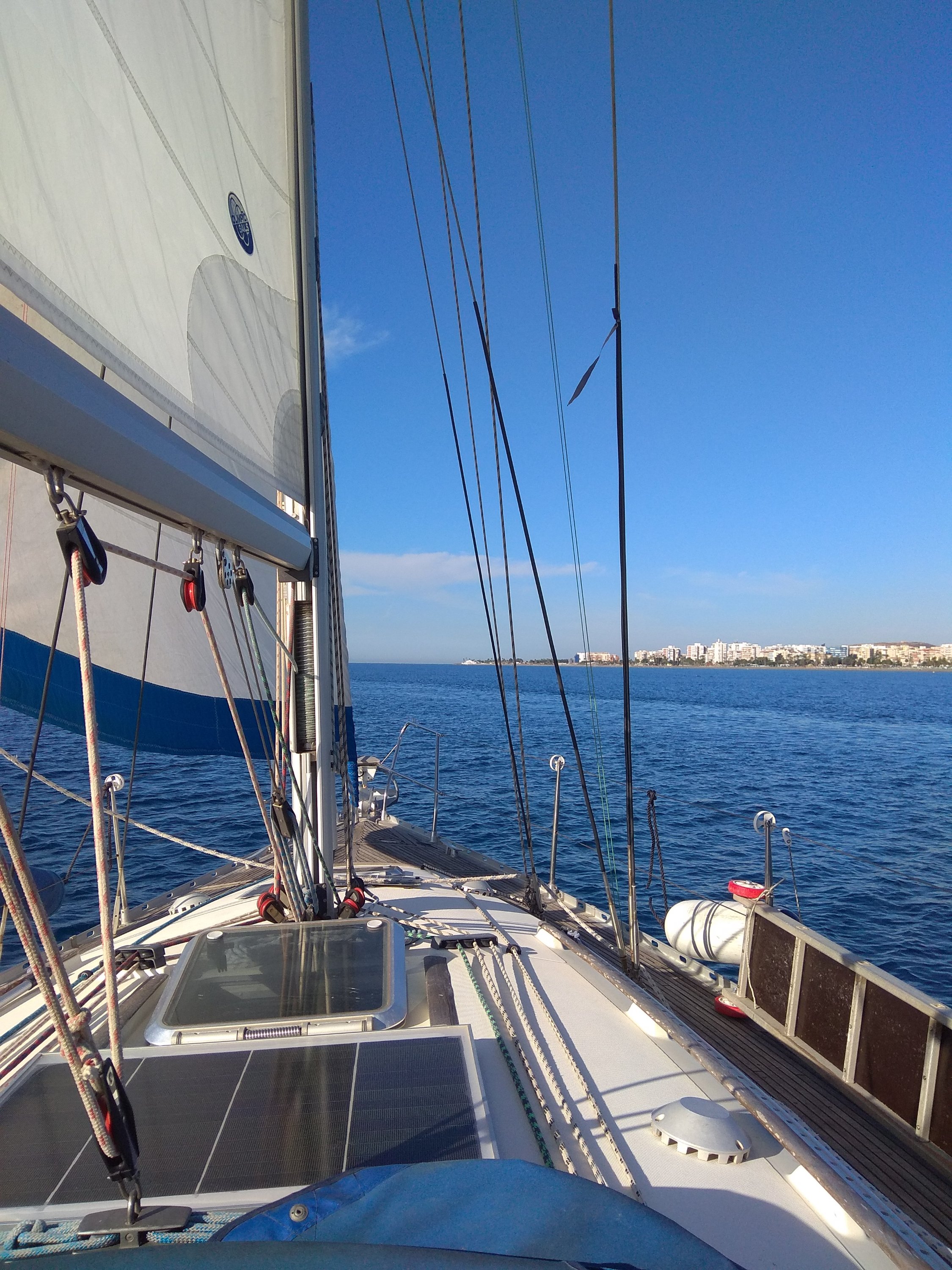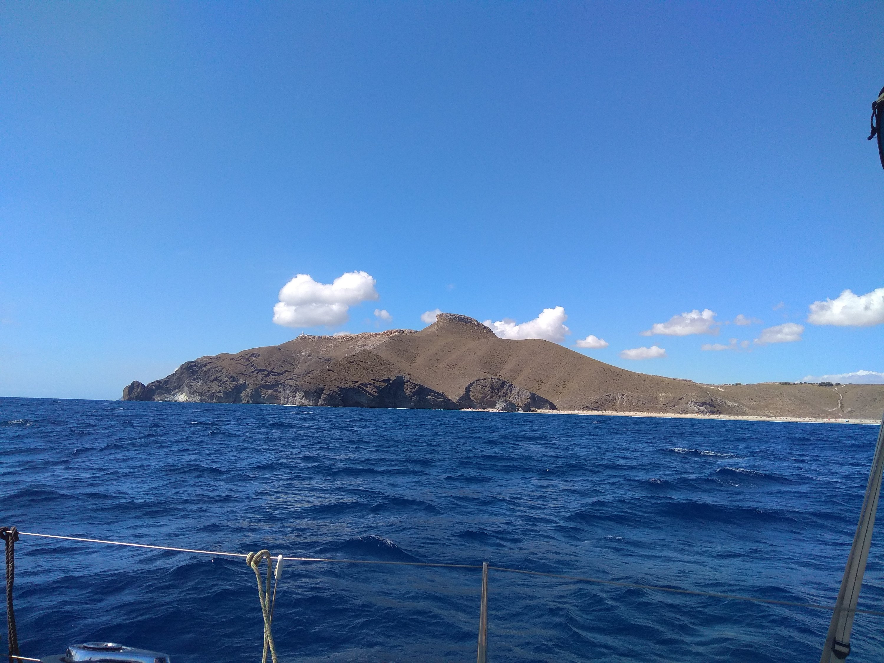 The conditions were perfect for sailing and it was not long before we turned off the engine and sailed away, following the coastline past Mojacar and Carboneras before rounding a very slight headland ( we did motor sail for a couple of hours at this point to get us to a better sailing position to use the wind). We had to do a fair few sail changes during the day to keep the wind in the sails but it kept us on our toes and it was good fun. All in all a fantastic day and another 38 nautical miles covered (because of the extra needed to make the most of the wind, it should have been around 30 if we could have travelled direct)