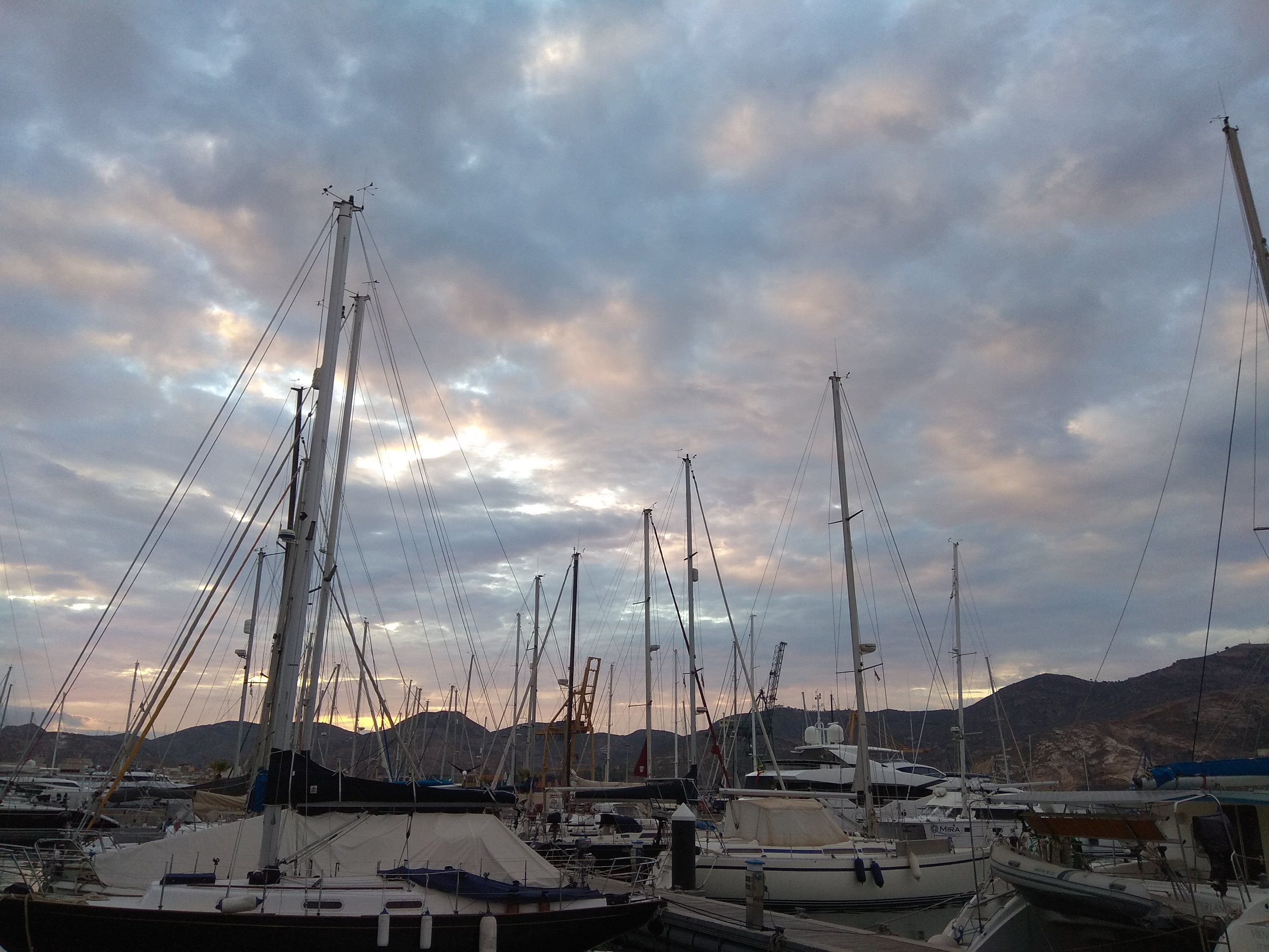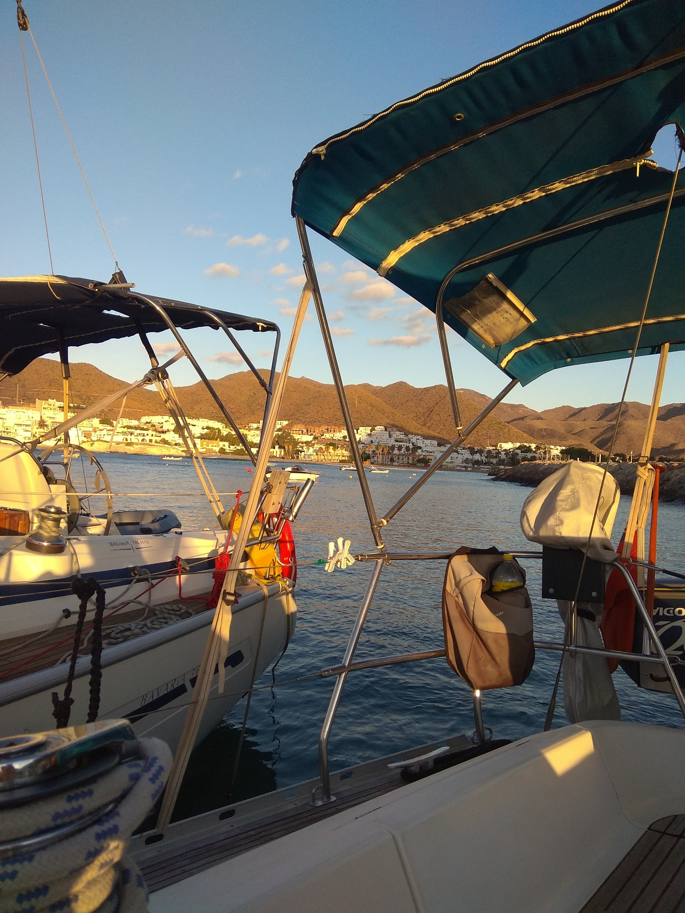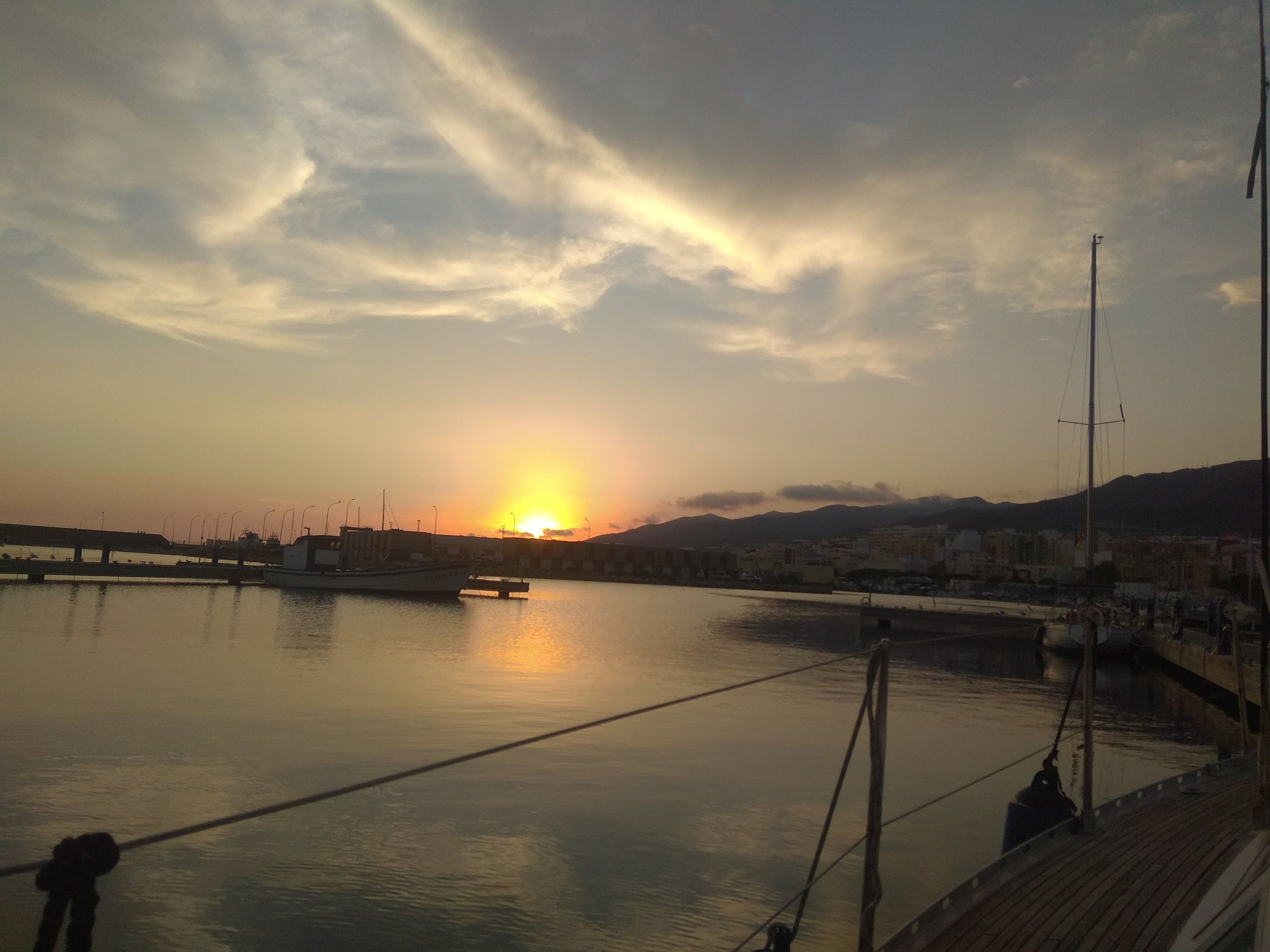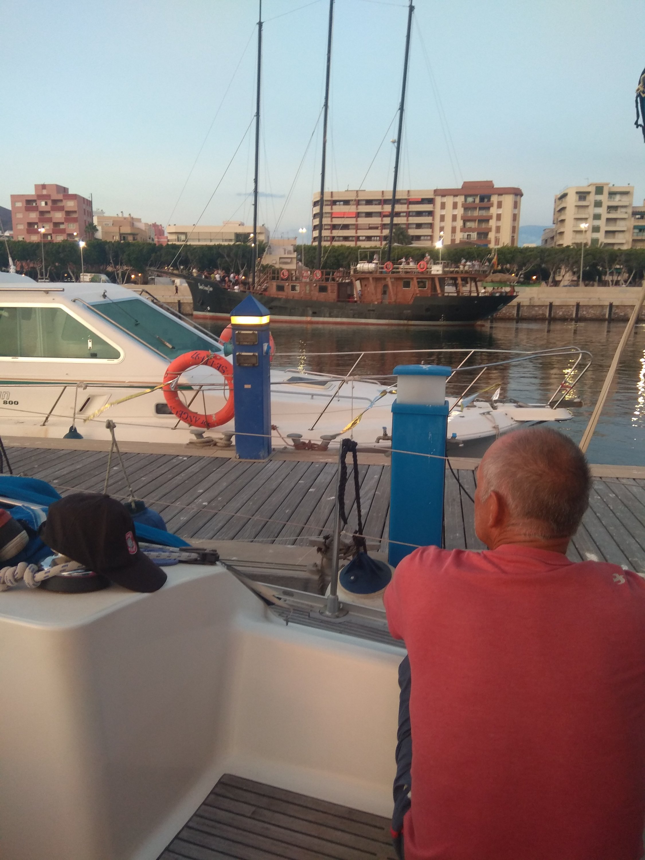 The marina at Adra is interesting to say the least. We arrived at around 4pm and berthed ourselves alongside, being careful to pick a space between the anti-seagull tape that is fluttering between the majority of the electricity stations along the pontoon. There are hardly any boats here in the marina and we waited for the marinero to arrive to explain that since we had booked online I needed to go to the port office to check in because there is no computer in the portacabin that serves as an office on the marina dockside. To be fair there are big signs explaining that there is a future development for the “puerto deportivo” but watch this space, there is no building work at the moment. When I got to the port office the boss was most excited because apparently we were the first boat to use the online booking system! I was made to feel like quite the novelty. We had a brilliant evening watching the sunset and the various activities of people wandering about the port.