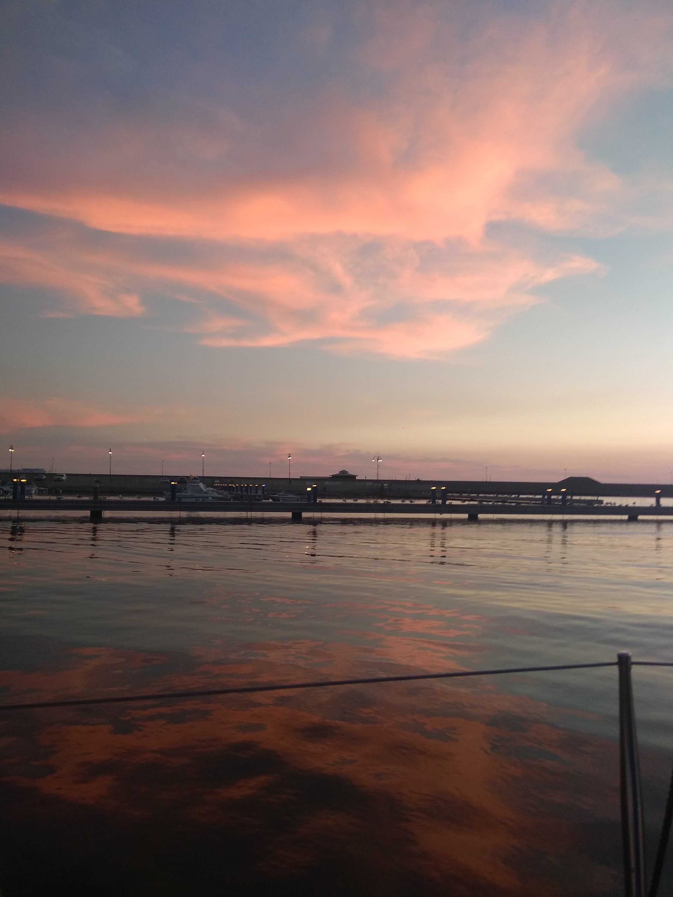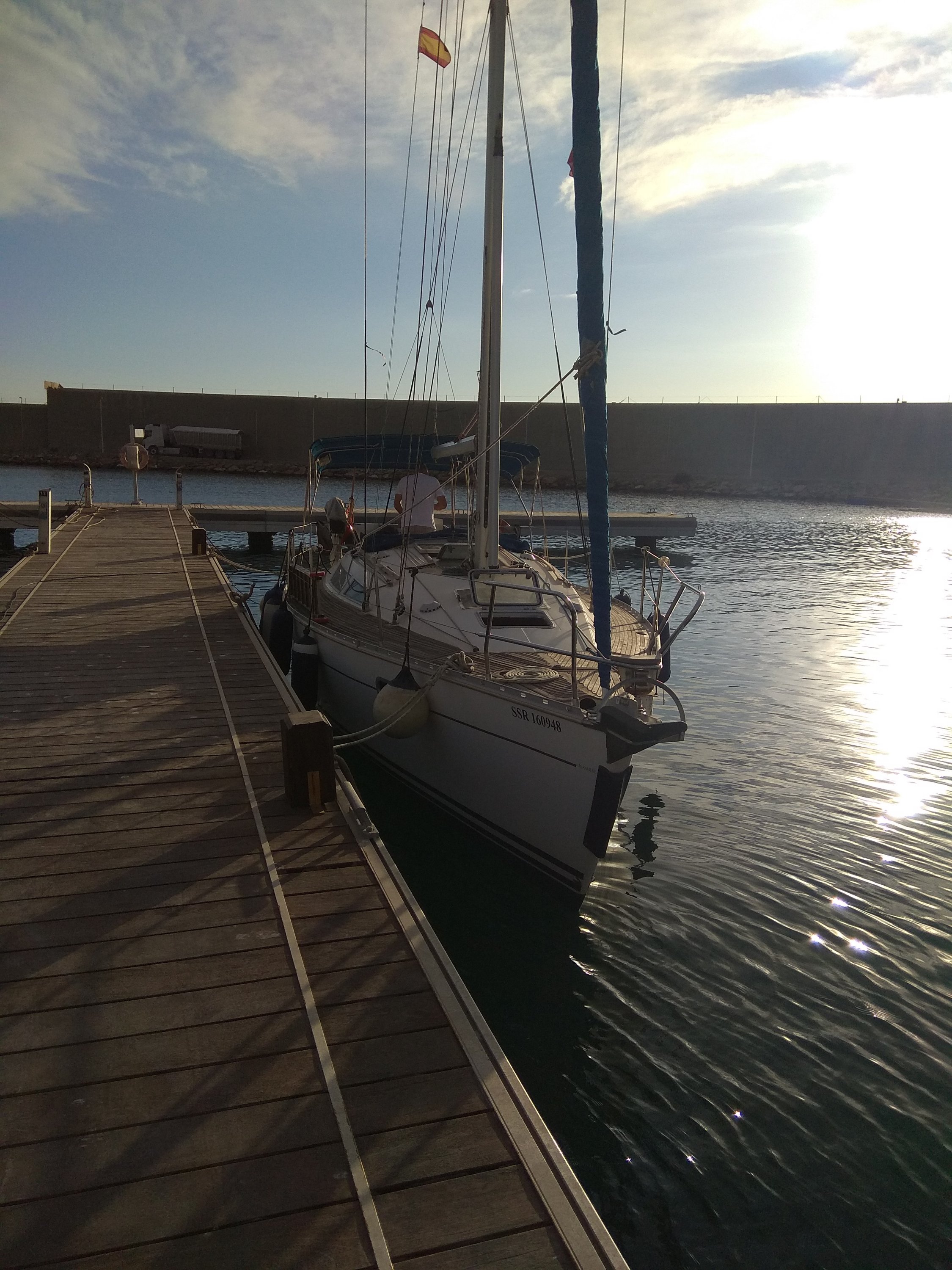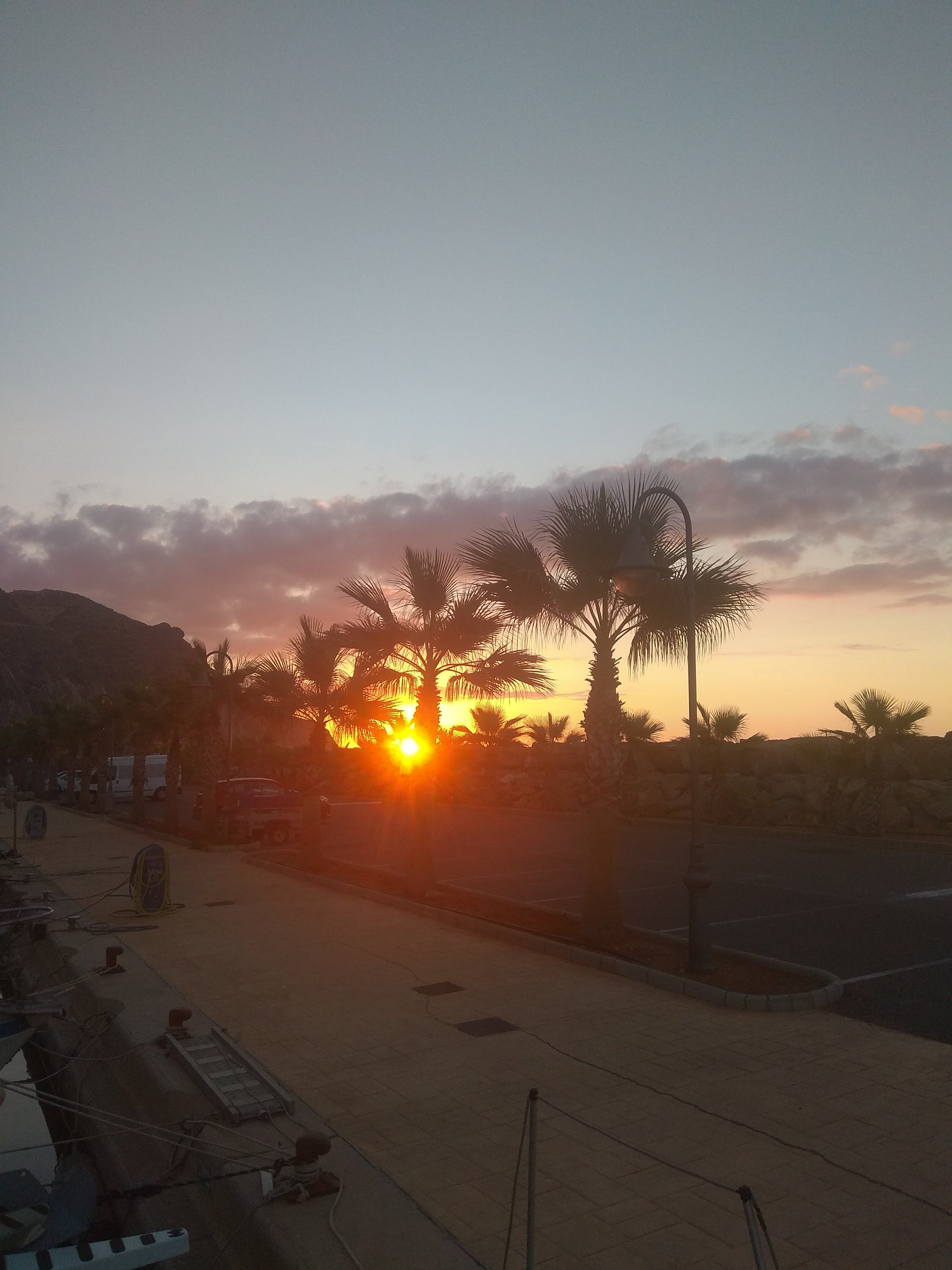 The marina at Adra is interesting to say the least. We arrived at around 4pm and berthed ourselves alongside, being careful to pick a space between the anti-seagull tape that is fluttering between the majority of the electricity stations along the pontoon. There are hardly any boats here in the marina and we waited for the marinero to arrive to explain that since we had booked online I needed to go to the port office to check in because there is no computer in the portacabin that serves as an office on the marina dockside. To be fair there are big signs explaining that there is a future development for the “puerto deportivo” but watch this space, there is no building work at the moment. When I got to the port office the boss was most excited because apparently we were the first boat to use the online booking system! I was made to feel like quite the novelty. We had a brilliant evening watching the sunset and the various activities of people wandering about the port.