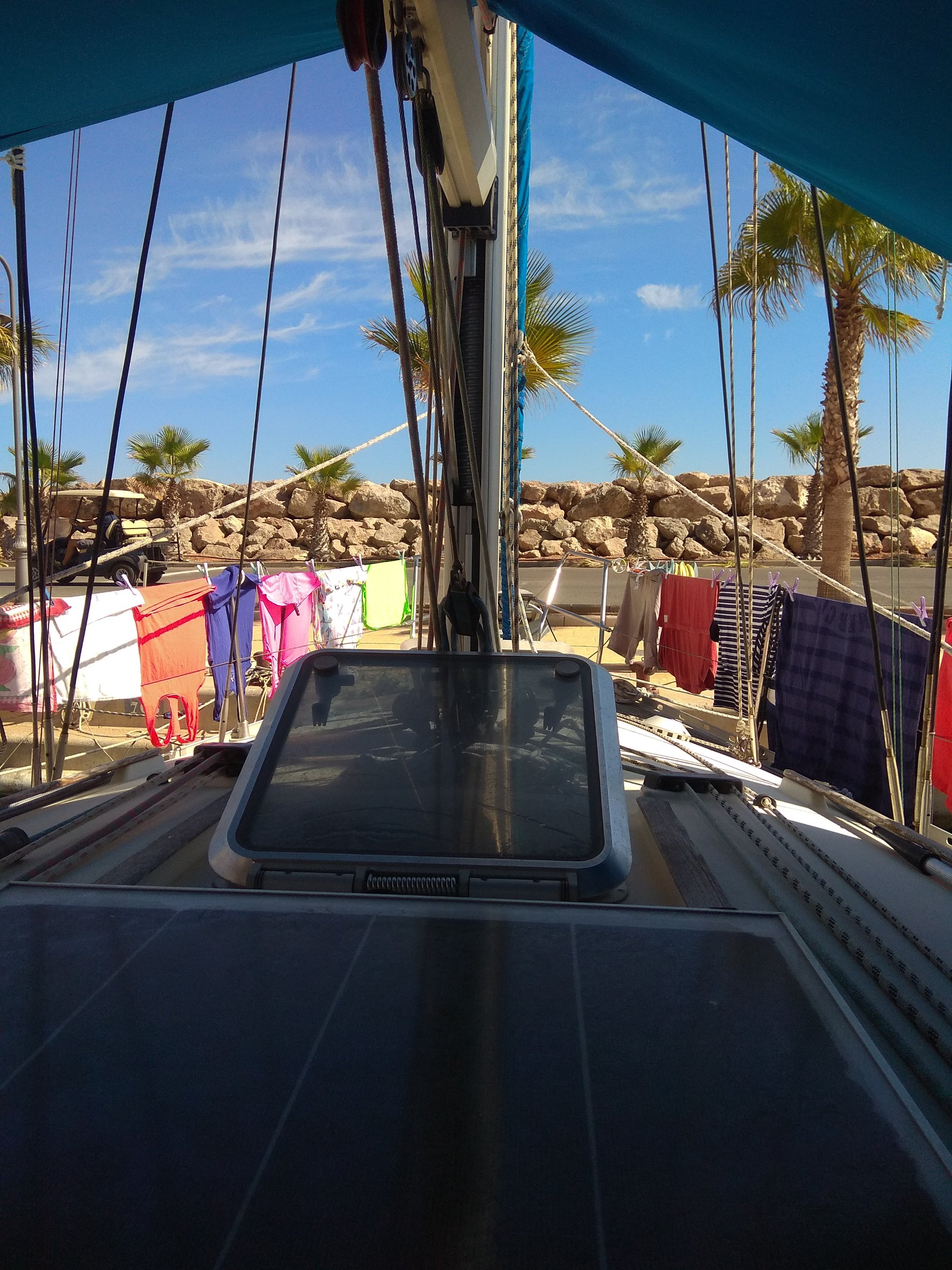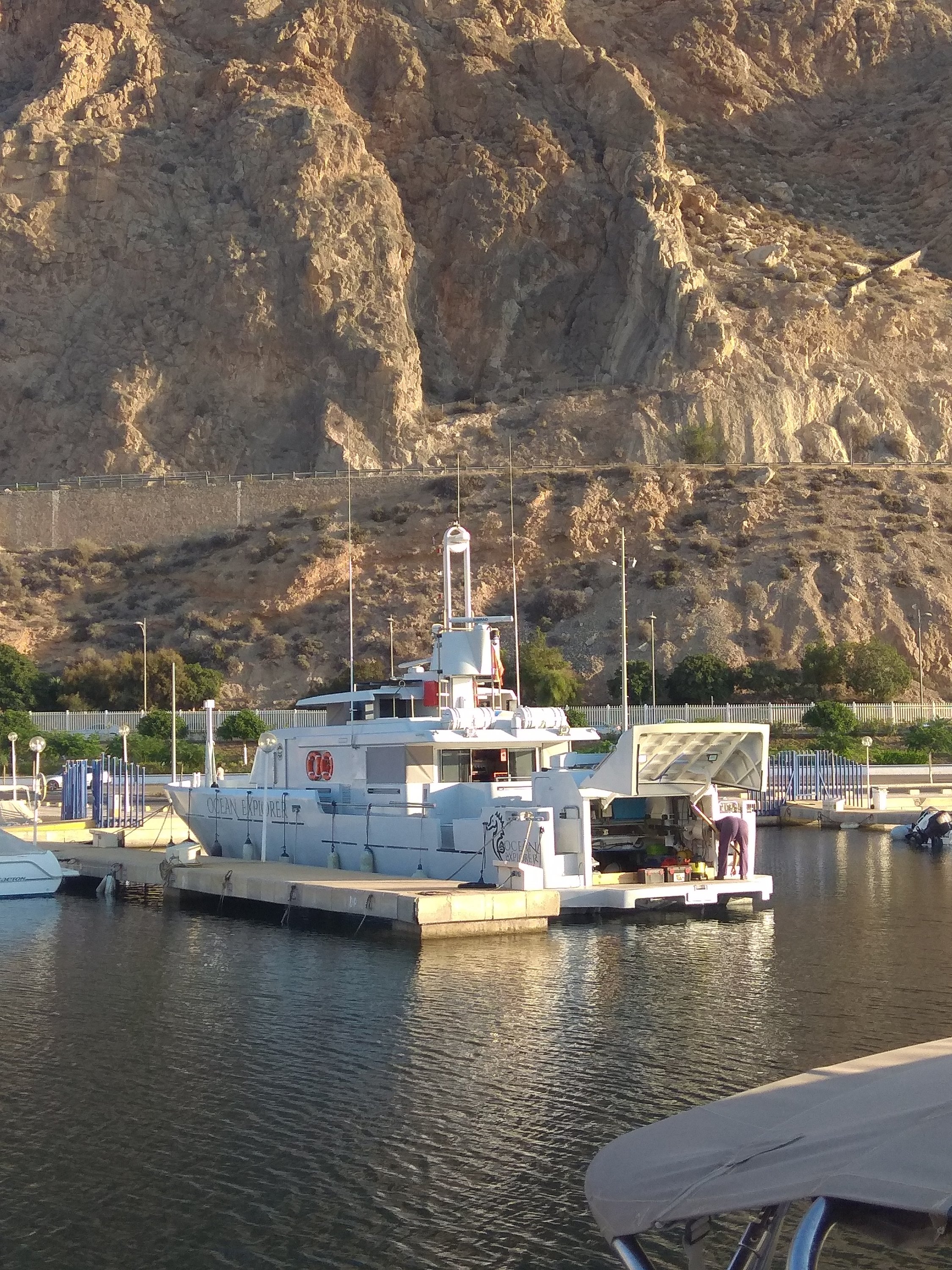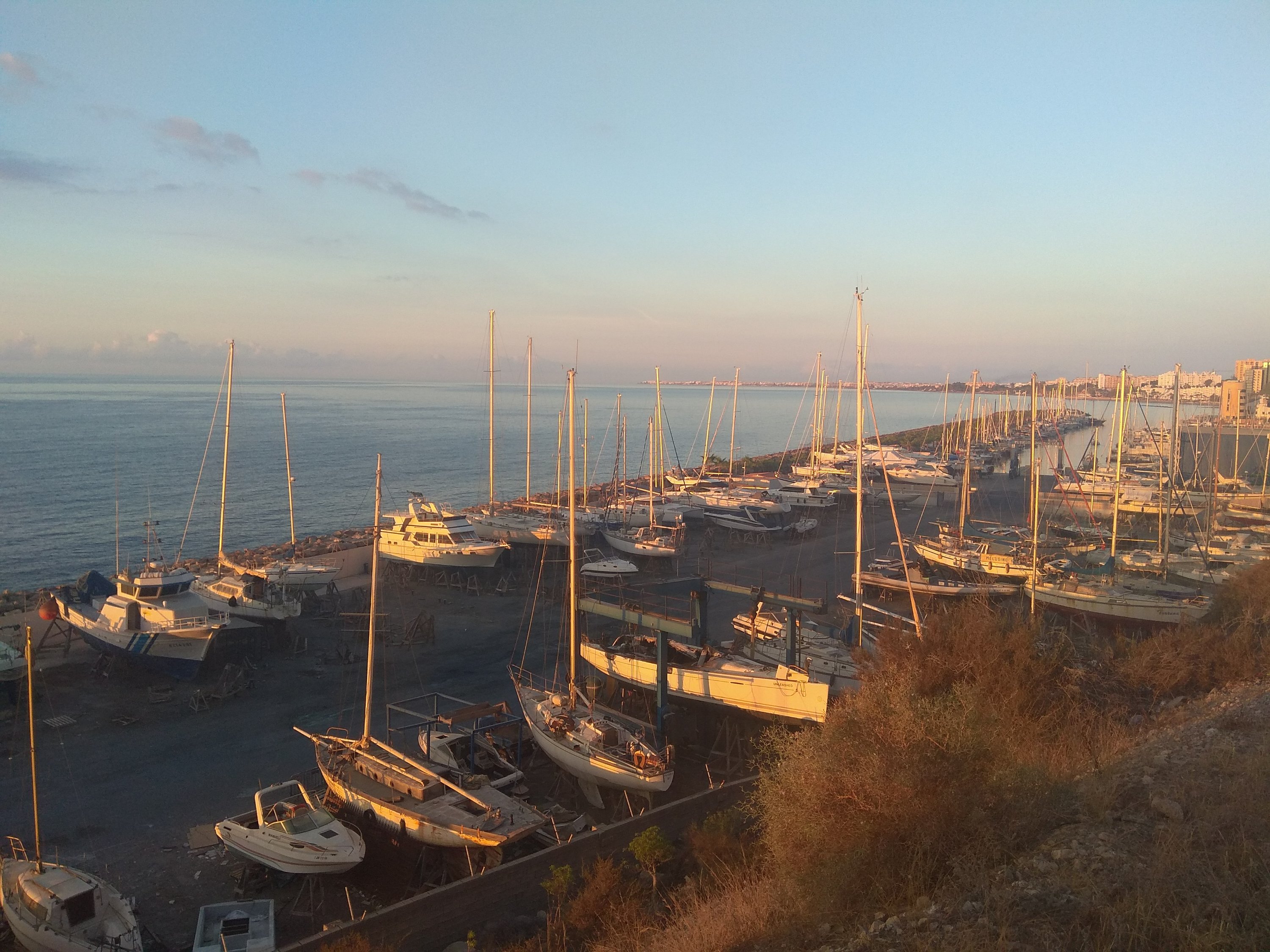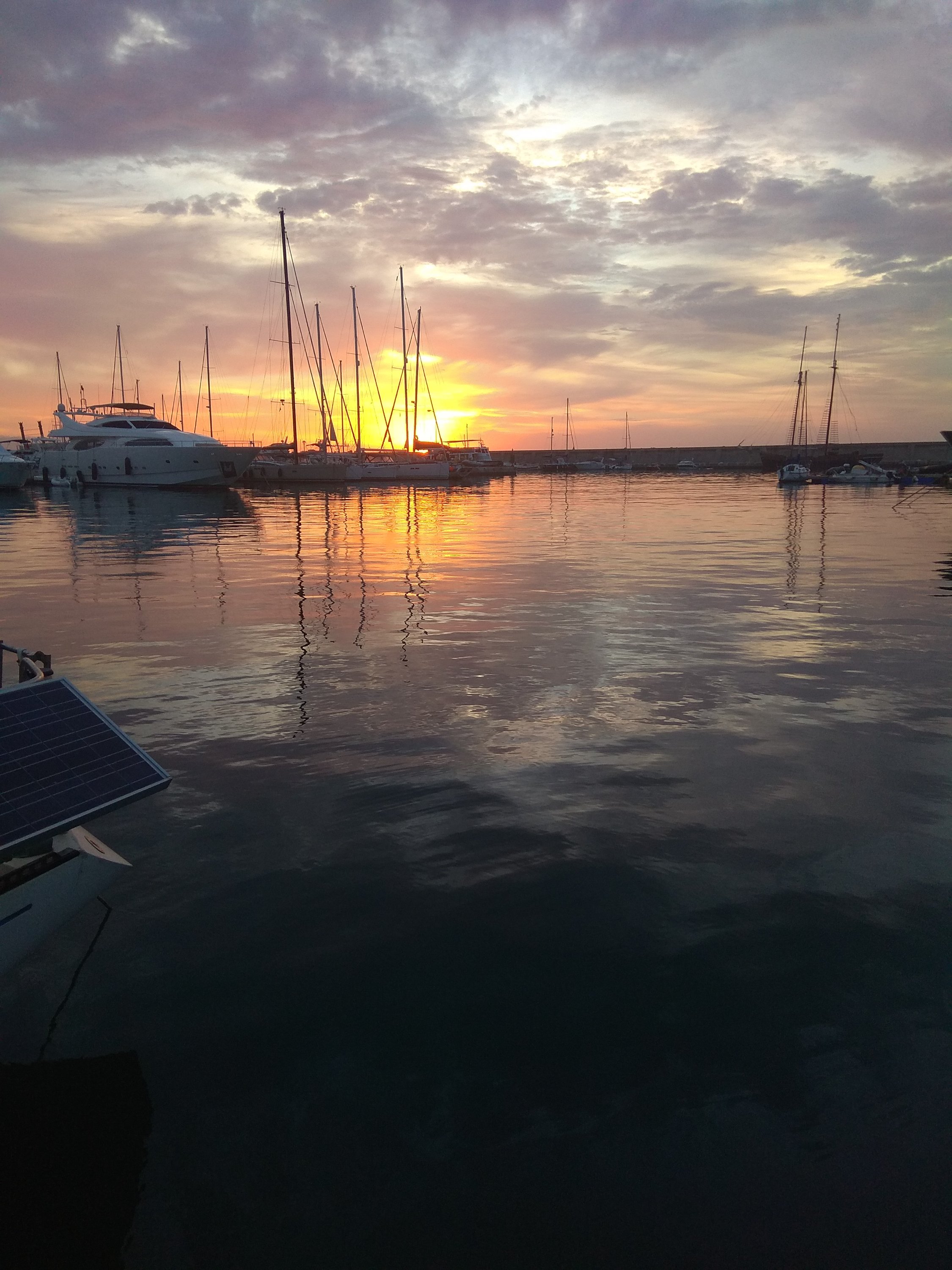 The marina at Adra is interesting to say the least. We arrived at around 4pm and berthed ourselves alongside, being careful to pick a space between the anti-seagull tape that is fluttering between the majority of the electricity stations along the pontoon. There are hardly any boats here in the marina and we waited for the marinero to arrive to explain that since we had booked online I needed to go to the port office to check in because there is no computer in the portacabin that serves as an office on the marina dockside. To be fair there are big signs explaining that there is a future development for the “puerto deportivo” but watch this space, there is no building work at the moment. When I got to the port office the boss was most excited because apparently we were the first boat to use the online booking system! I was made to feel like quite the novelty. We had a brilliant evening watching the sunset and the various activities of people wandering about the port.