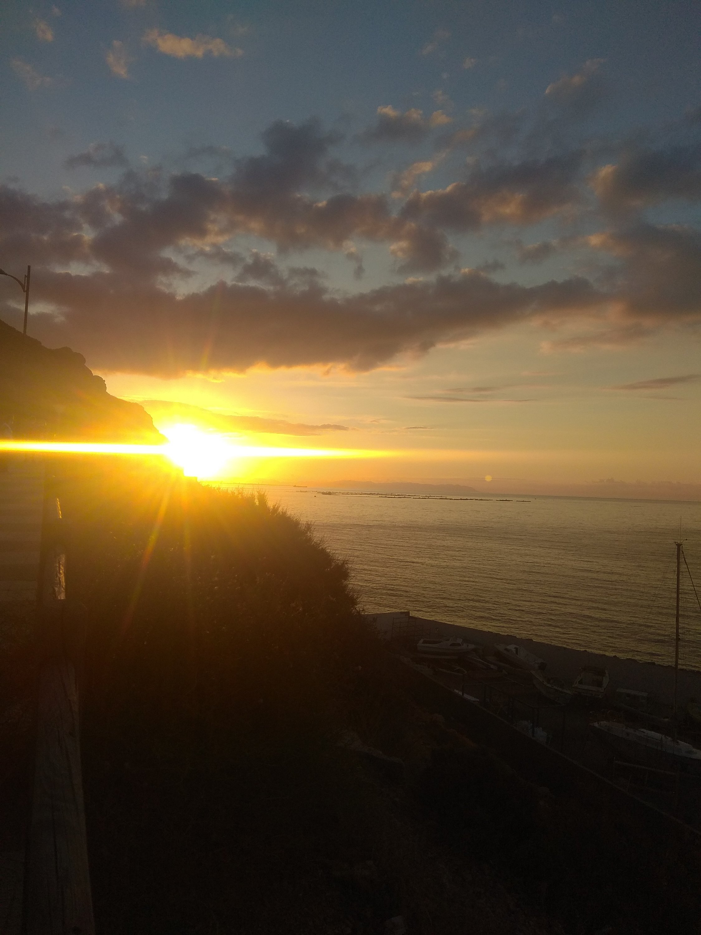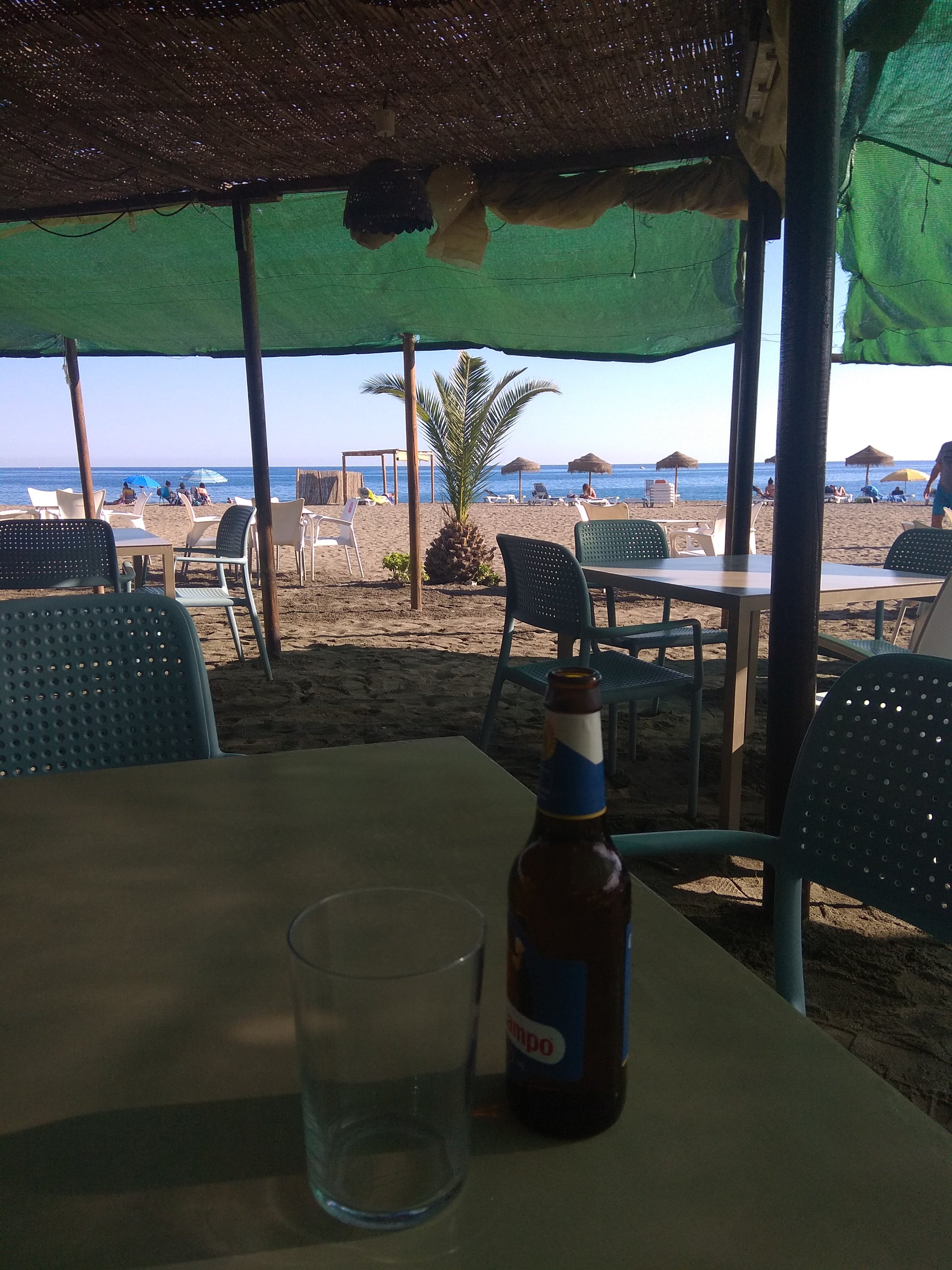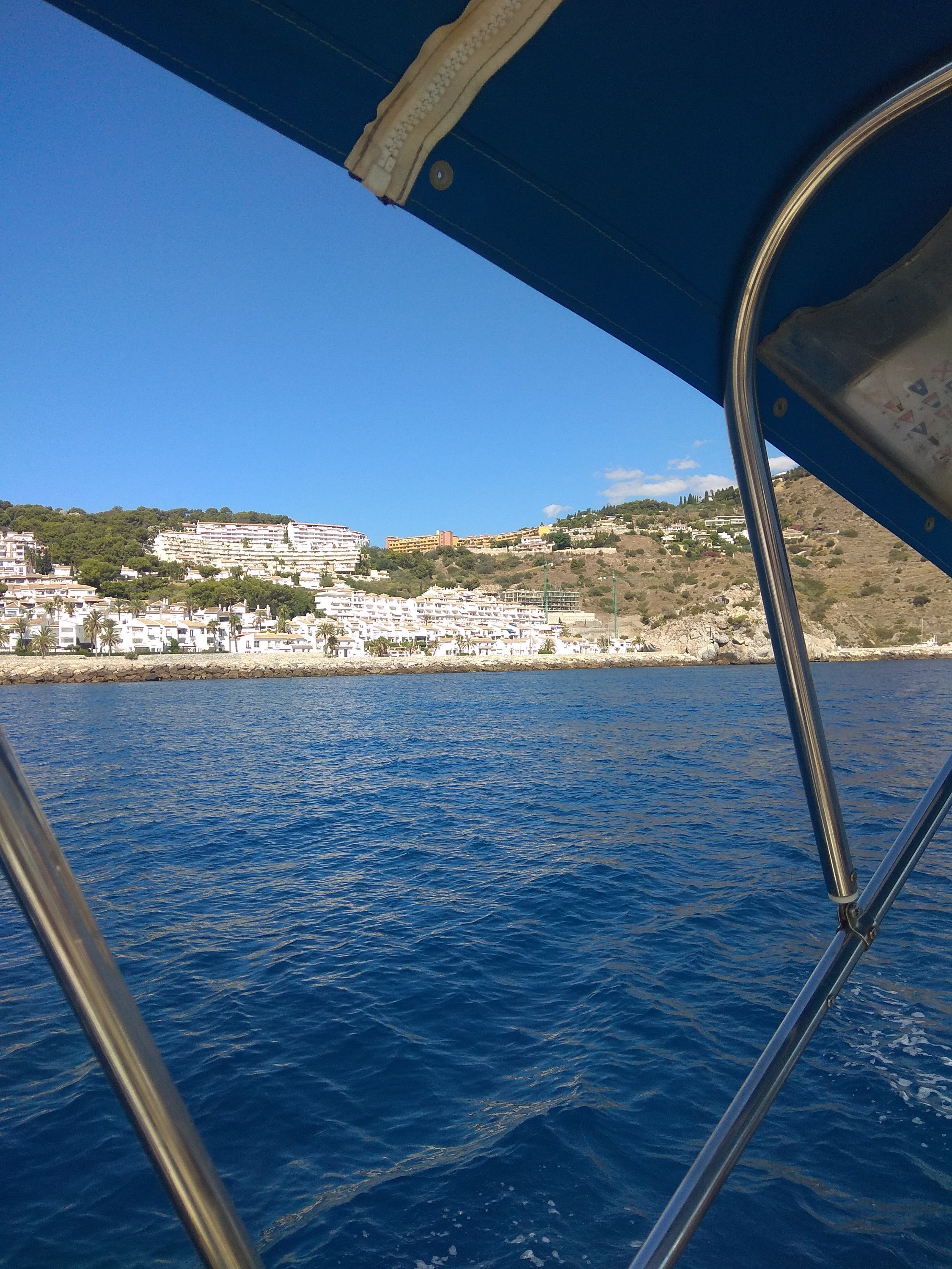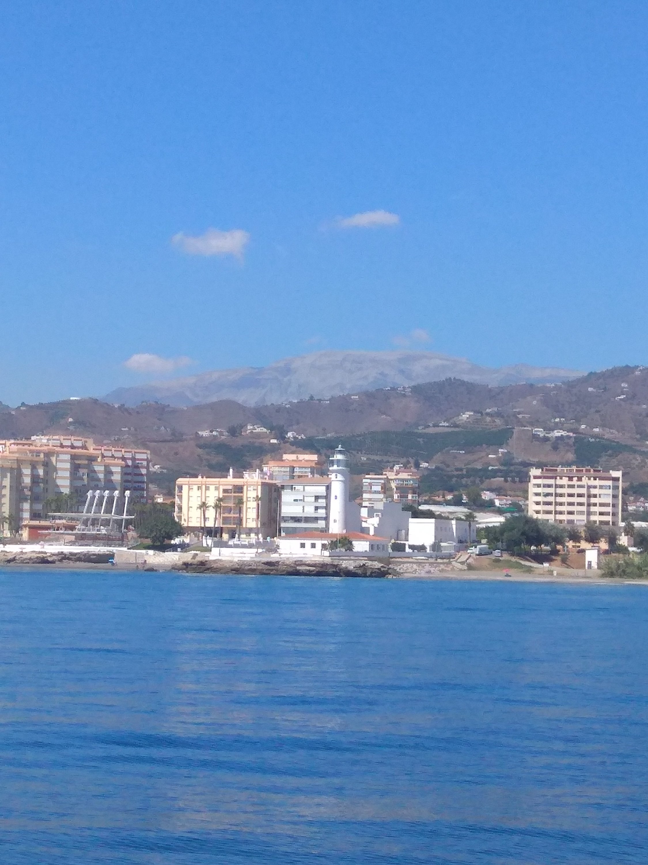 Before we knew it we were at Torrox lighthouse and from there is was a short run into the marina at Caleta de Vélez.   We arrived earlier than we had expected and took a walk to the beach where I chose a fish dish from the menu at the beach bar.  Note the word bar, this wasn’t a restaurant by any stretch of the imagination but the food was outstanding.  We were really surprised and very happy.  We had, had a wonderful couple of days with a sunset view from the boat too.