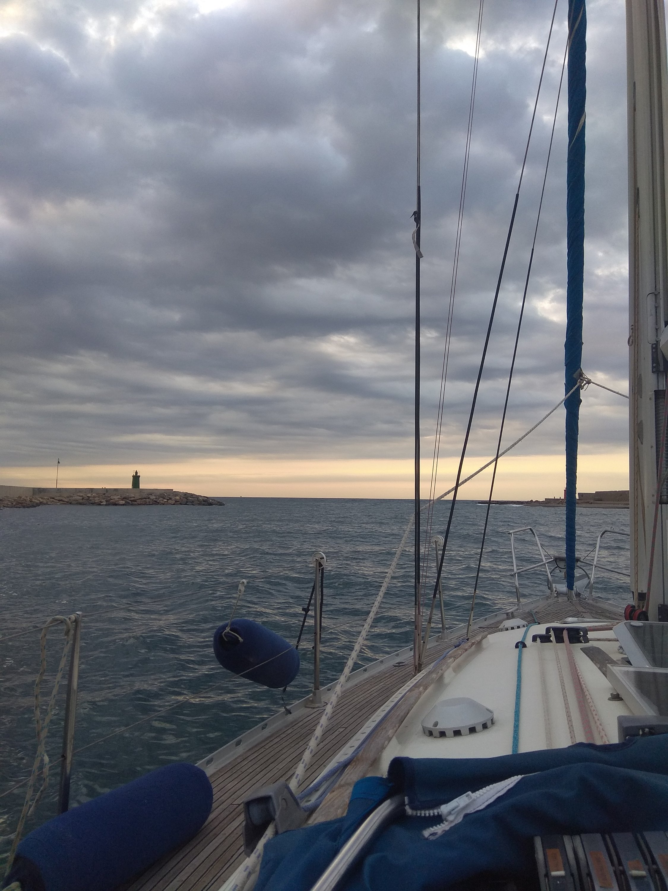 The next day we awoke to stronger weather as we had anticipated, it was quite cloudy and we expected a swell too. We had a plan A, B and C in case the weather got too much and indeed it was quite choppy as we departed the marina. We decided to see how we felt and once we were underway and with some sail up the boat smoothed out and we started to make progress.