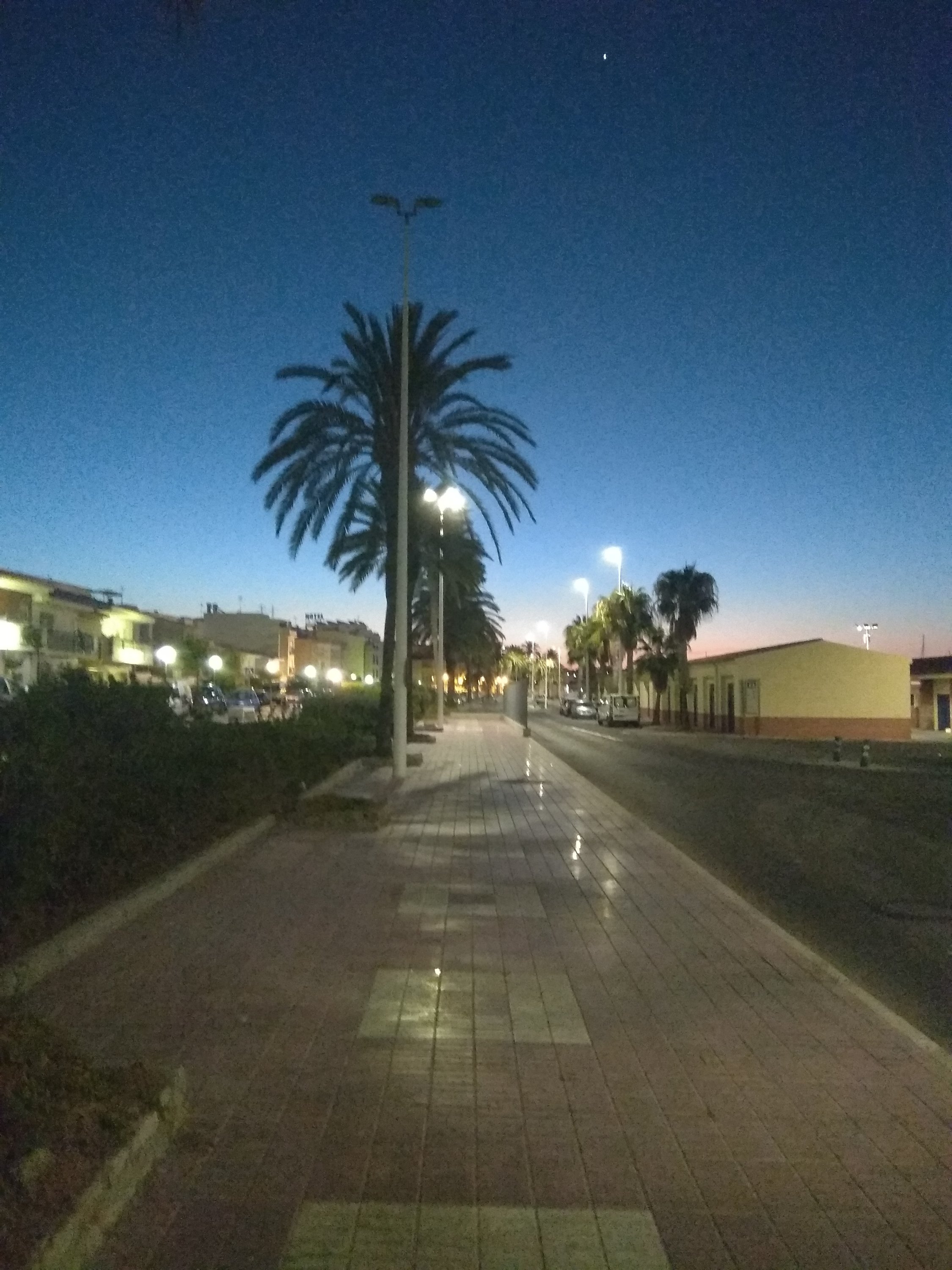 I got up early in Caleta de Vélez and headed out for a morning walk.  Me and lots of others but the social distance measures here are extensive with a one way system along the paseo (which amazingly people really adhere to).  There is also a path created along the beach of compacted sand where it is easy to walk/run – doubling the capacity of the pedestrian area.  The architecture here is interesting too – there are new tower blocks in amongst the original cottages and even some older style beach huts which you don’t see a lot here.