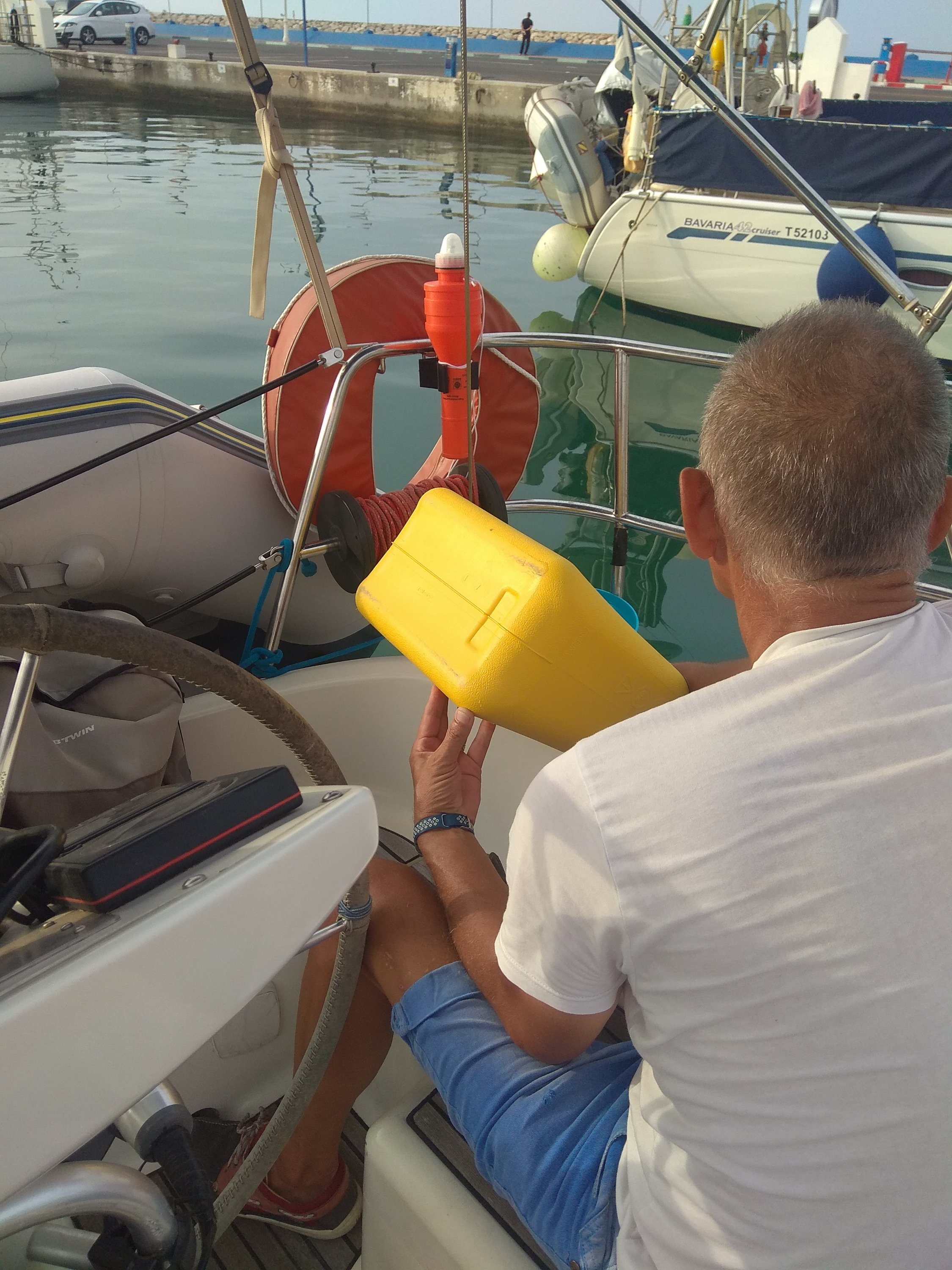 It wasn’t quite as hot as last weekend thank goodness and we got through all the jobs, we also started to load up ready for our trip – hopefully we set sail early next week. This meant that the fenders needed to be re-adjusted because Gemini J is now sitting lower in the water thanks to our provisioning (mainly water, water and more water with the odd bottle of branston pickle and brown sauce) We also took off all our fuel canisters ready to re-fill before the trip.